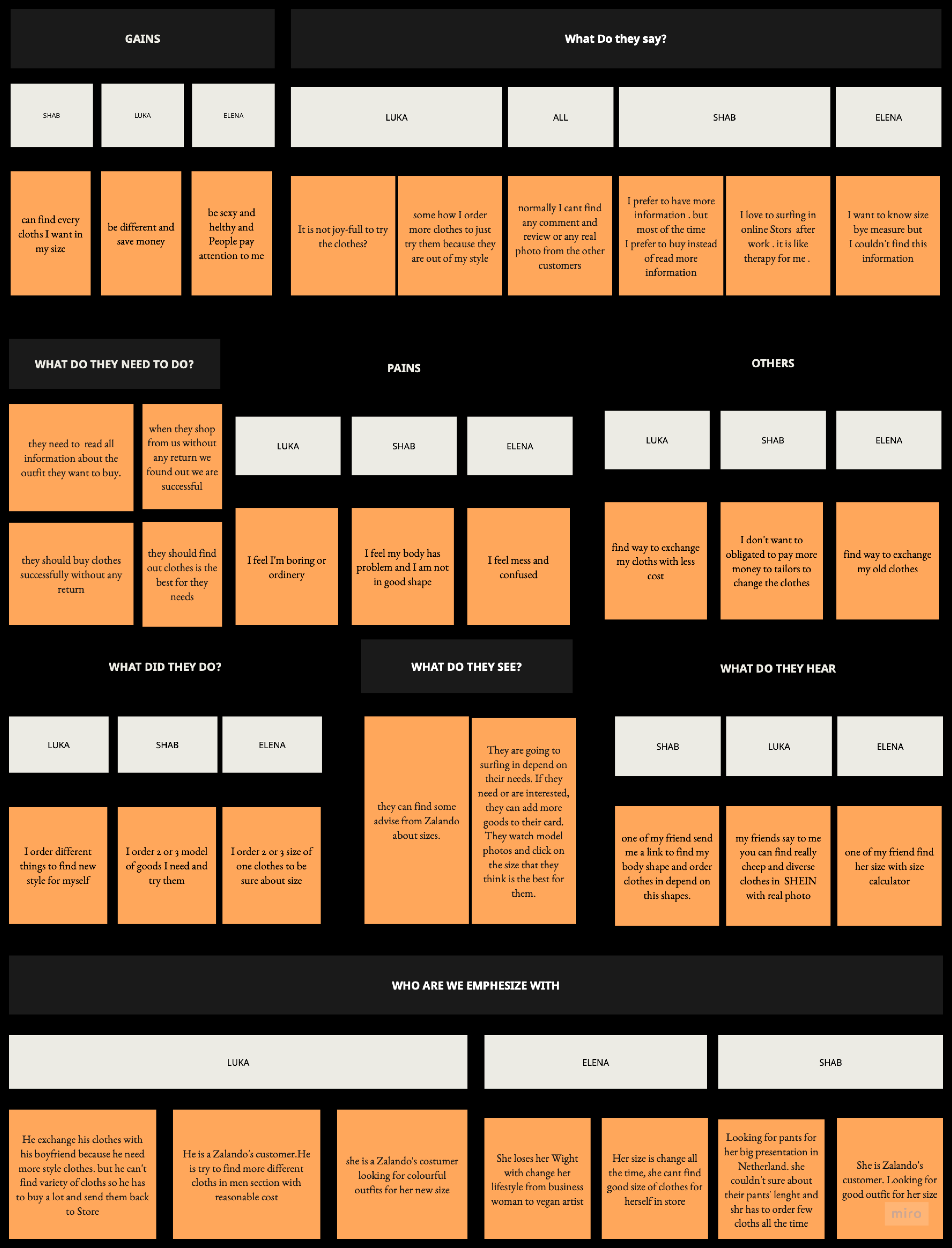 User interview insights: Empathy Map