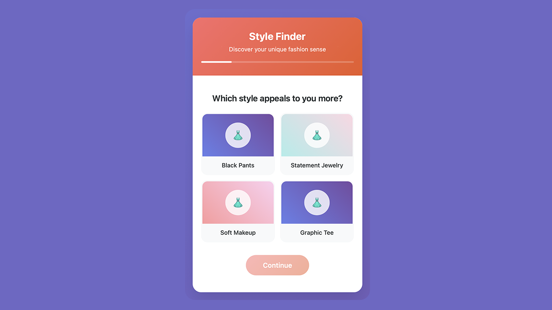 Interactive prototype demonstrating the style finder micro-quiz concept